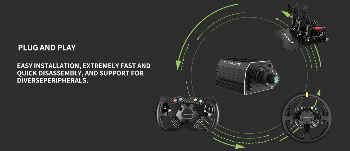 Then look no further than the CAMMUS WB15 Wheelbase Bundle. This is bundles with the GT2 Steering Wheel and LC100 Pedals to give you that perfect match of feel and performance for that race enthusiast.