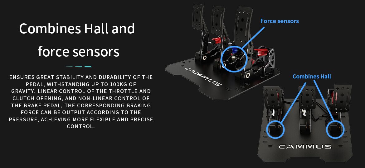 - Adjustable pedal throw and stiffness.