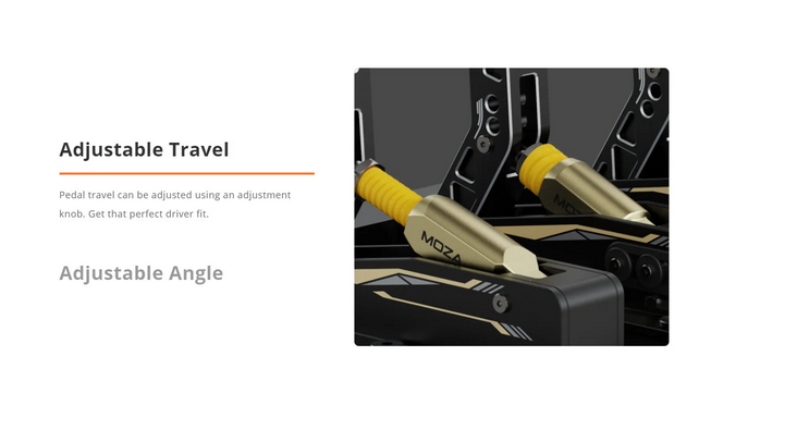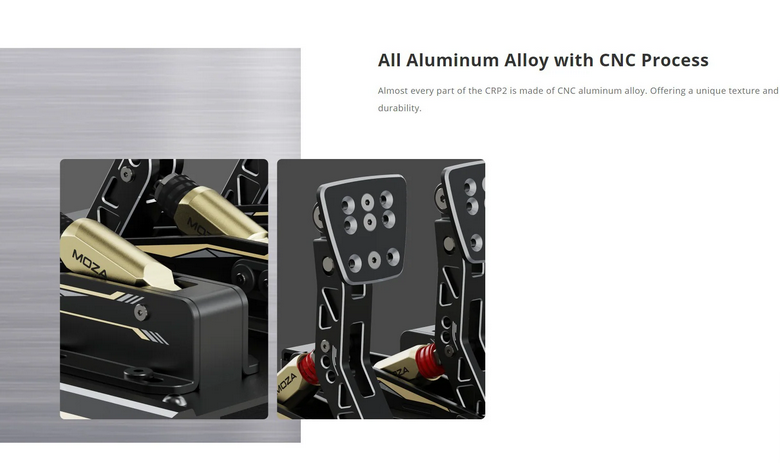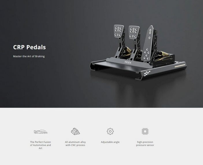 Master your speed like a pro with the MOZA CRP Pedals. Featuring a 3-stage clutch for superior control. The CNC aluminum pedal assembly ensures sturdiness and reliability. Adjust the angle to suit your preference and optimize your performance. With its high-precision pressure sensor, every input is accurately detected.