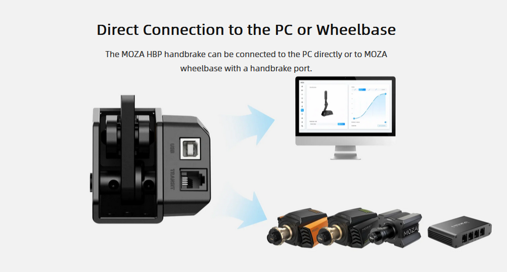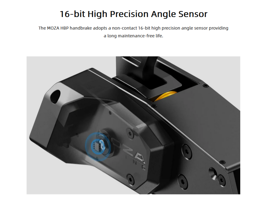 MOZA HBP Handbrake features an all aluminum CNC machined construction, adjustable angle and resistance, universal/USB connection to PC, and all at an unbeatable price. The HBP Handbrake sets a new standard for sim racing handbrakes.